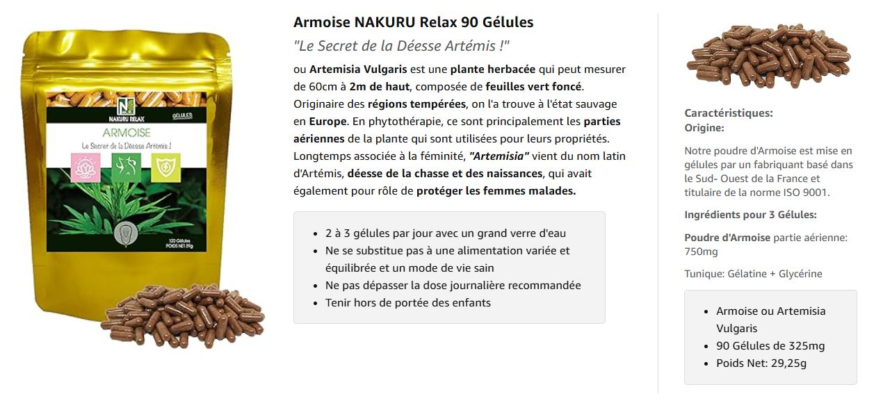 L’armoise utilisée dans ce complément est l’armoise commune (Artemisia vulgaris), une plante traditionnellement consommée en infusion ou en poudre pour ses nombreuses propriétés. L’armoise annuelle (Artemisia annua), quant à elle, est une autre variété souvent associée à d’autres usages. Il est donc important de ne pas les confondre !