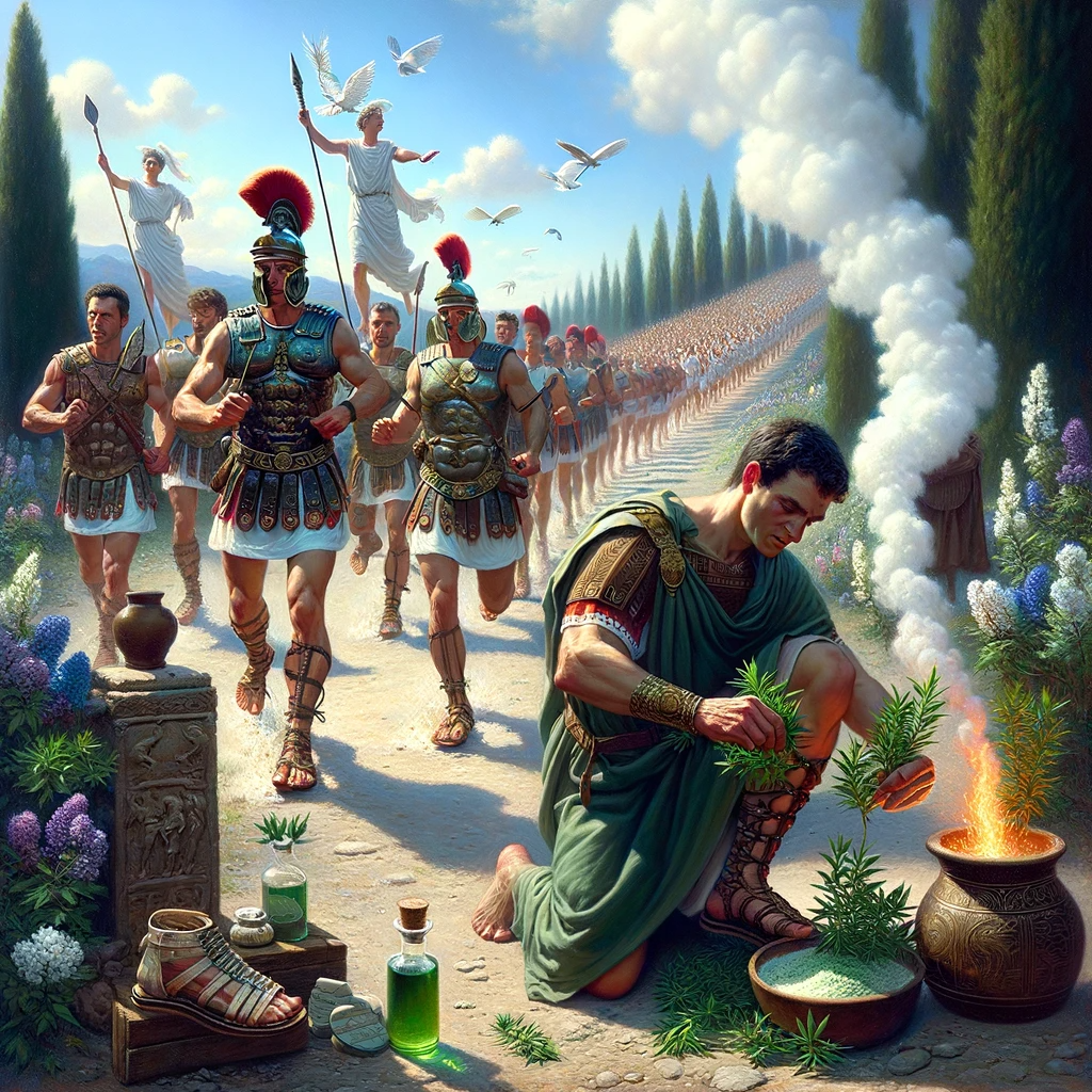 Les légionnaires romains utilisaient les feuilles d’armoise dans les calligaes contre la fatigue des pieds et pour augmenter les cadences de marche. Les huiles essentielles contenues dans la plante se libéraient au fur et à mesure de la journée en assainissant les pieds, évitant les ampoules et procurant une sensation de fraicheur.