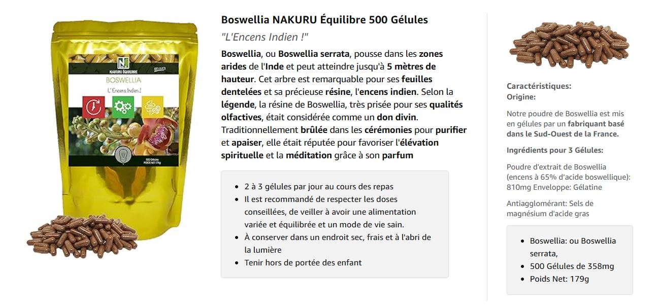 L’extrait de Boswellia que nous utilisons provient d’une filière établie en Inde, où l’arbre Boswellia pousse naturellement. Ensuite, la mise en gélules est réalisée par un fabricant basé dans le Sud-Ouest de la France pour garantir la qualité du produit.