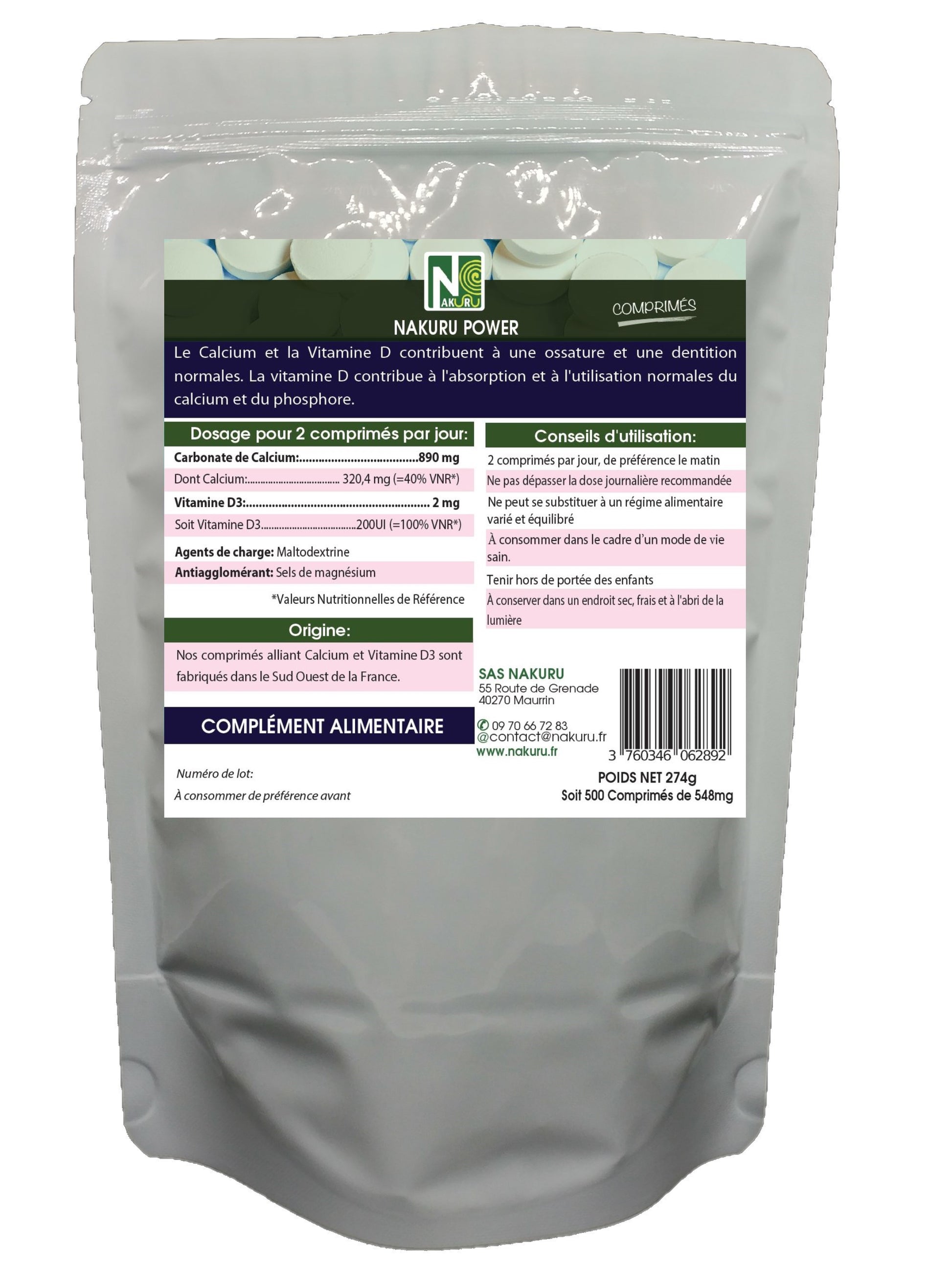 Calcium + Vitamine D3 | 500Comprimés | Gamme Power | Fabriqué en France | "La Puissance Minérale !"