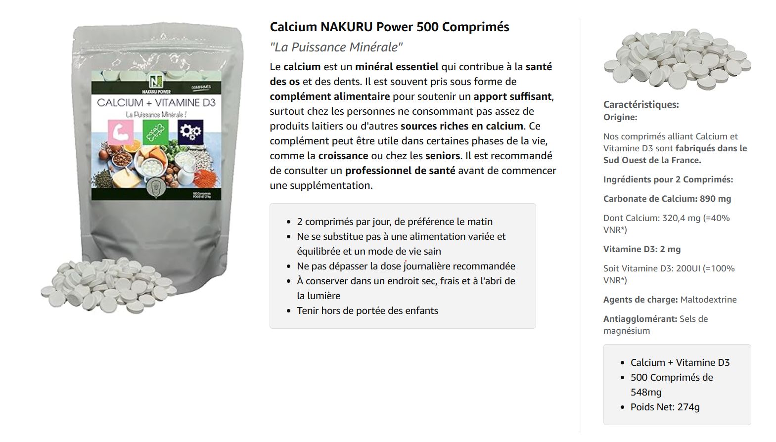 NAKURU est conçu pour compléter votre alimentation en calcium et vitamine D3, tout en facilitant son intégration dans votre routine quotidienne. Il ne se substitue pas à une alimentation équilibrée.