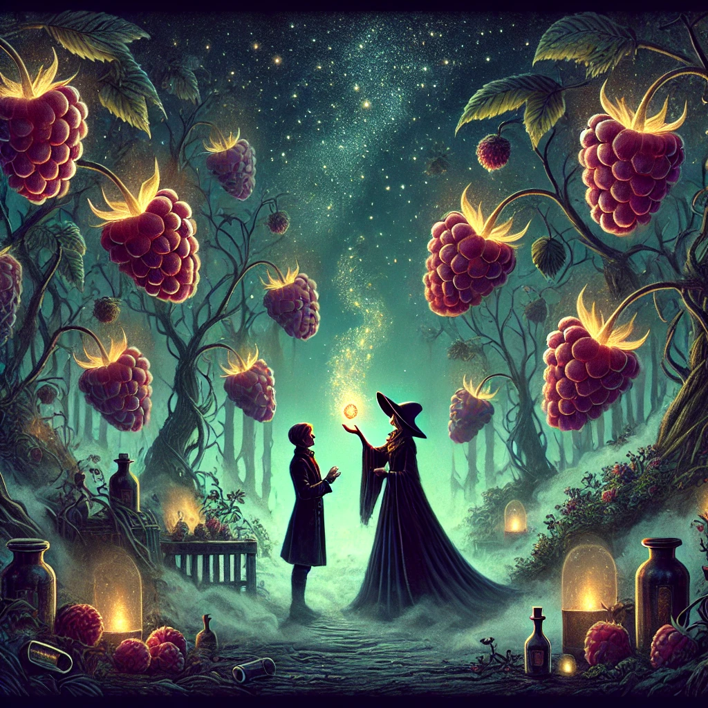 La légende raconte que les jeunes gens courageux venaient voir la sorcière dans l'espoir d’obtenir une framboise et de découvrir des indices sur leur destinée. Mais ces visions pouvaient être troublantes, et il fallait un cœur résolu pour affronter la vérité révélée. Le jardin de la sorcière restait ainsi un lieu à la fois fascinant et redouté, où l’espoir et la crainte se mêlaient, laissant chaque visiteur face à son propre destin.