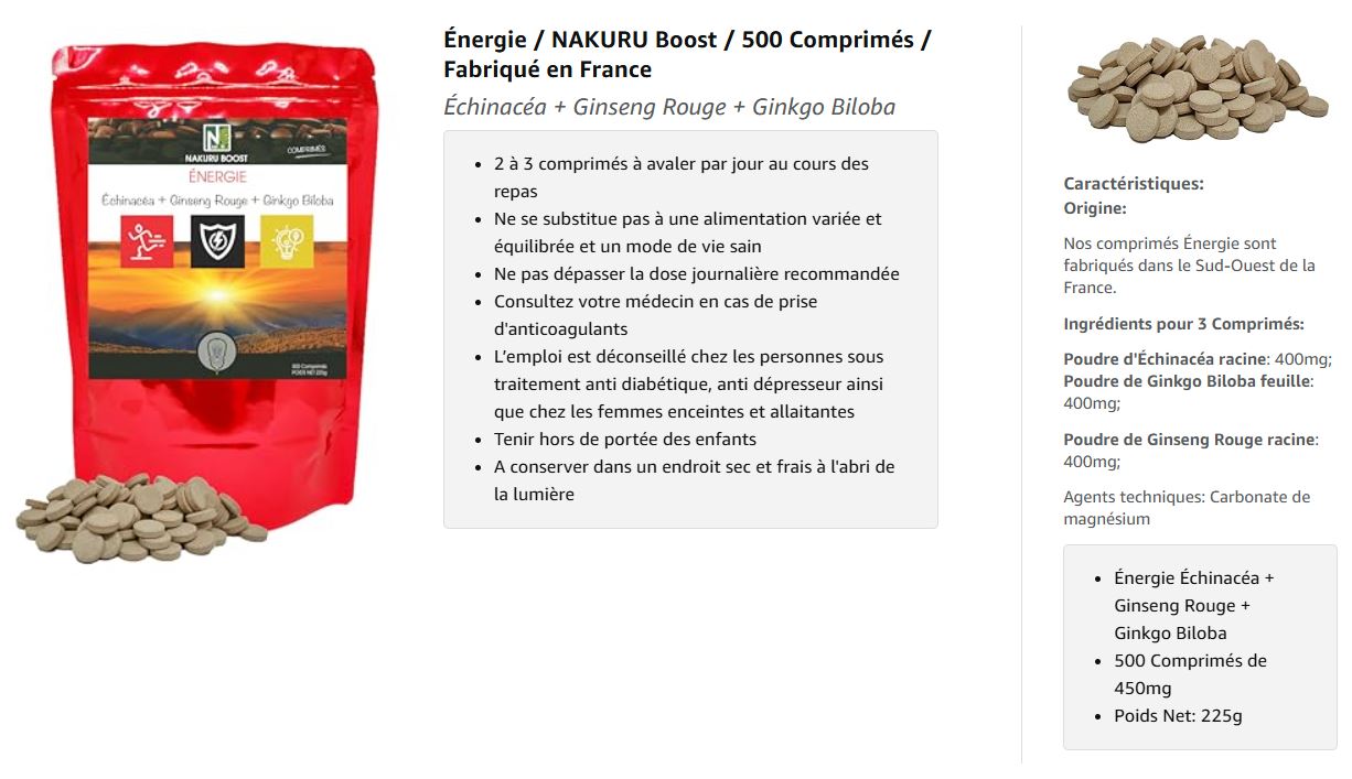 Avec son mélange d’échinacéa, ginseng rouge et ginkgo biloba, ce complément Nakuru allie tradition et qualité française. Son format pratique et son prix abordable en font un choix malin pour une énergie au naturel