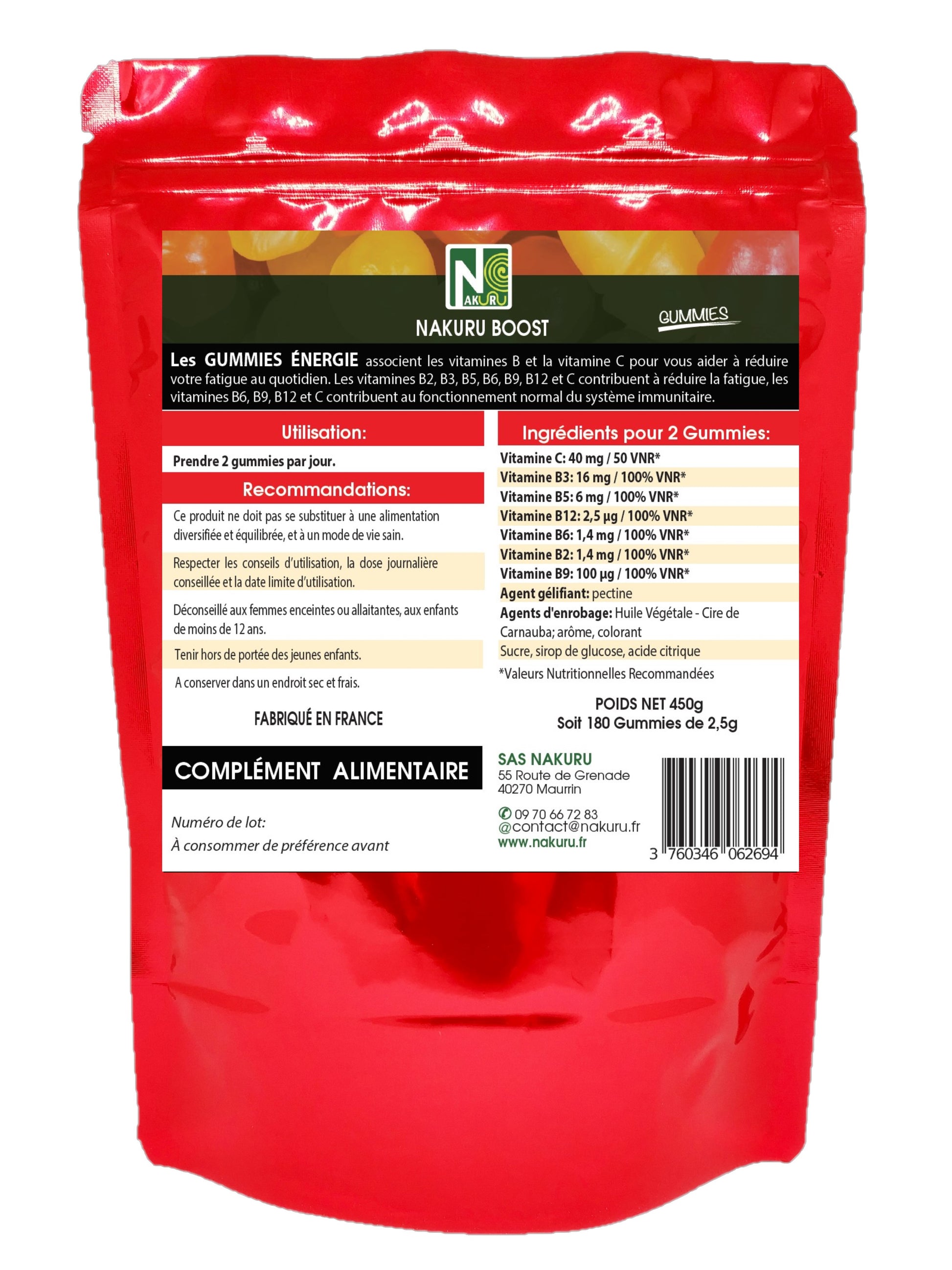 Energie Gummies | 180 Gummies / 90 Jours | Gamme Boost | Saveur: Fruit de la Passion |Fabriqué en France | "7 Vitamines: C-B3-B5-B12-B6-B2-B9 !"