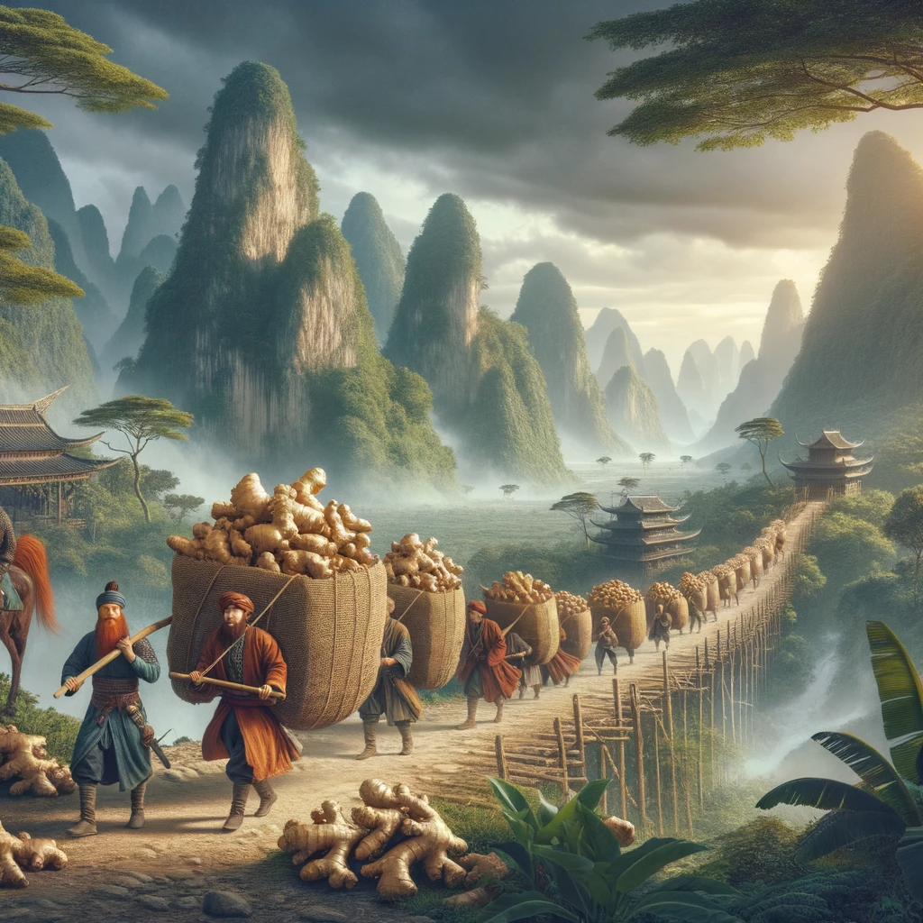 Au sein des royaumes d'Asie, le gingembre n'était pas qu'une épice; il symbolisait richesse et pouvoir. Sa rareté en faisait un trésor. Les marchands, bravant dangers, le transportaient sur de vastes distances, cherchant les faveurs des nobles. Dans les banquets royaux, les mets au gingembre affichaient la grandeur du souverain. L'offrir en cadeau était une marque d'honneur. Pour beaucoup, il ne servait pas seulement à rehausser les saveurs, mais aussi à étaler sa richesse. Cette épice incarnait le luxe, le prestige et le statut dans ces sociétés anciennes. Il était à la fois un délice, un présent et un outil politique.