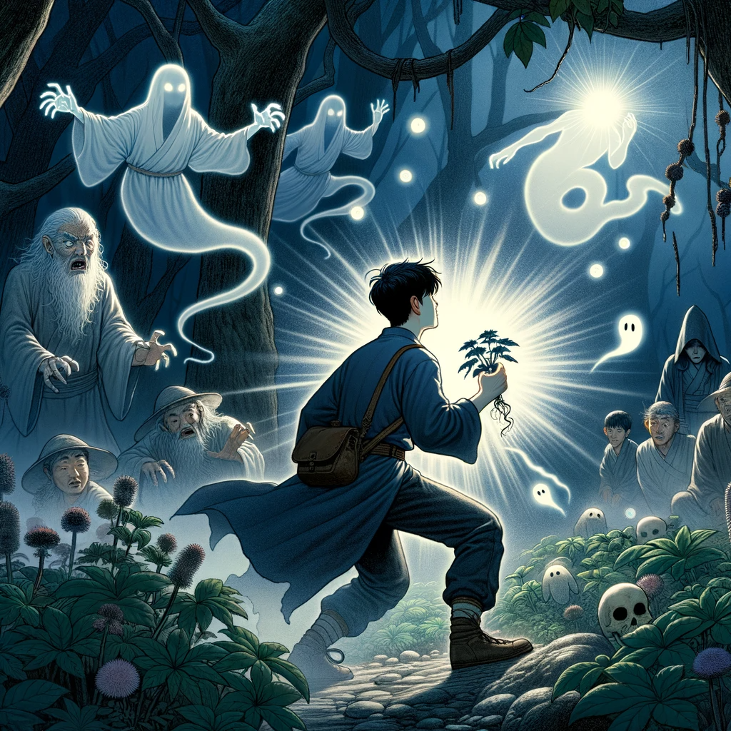 Joon, un jeune homme déterminé, entra dans la forêt pour trouver cette racine, espérant guérir sa mère malade. Les esprits tentèrent de le tromper, mais l'amour sincère de Joon pour sa mère le guida. Après des jours, il découvrit le ginseng. Plutôt que de le garder, Joon le partagea avec d'autres malades du village.