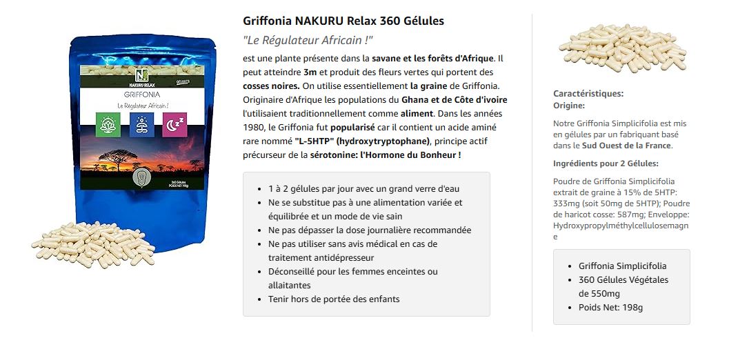 J’ai intégré ce Griffonia à ma routine, et après quelques jours, j’ai ressenti une nette amélioration sur mon équilibre émotionnel. Un bon complément naturel