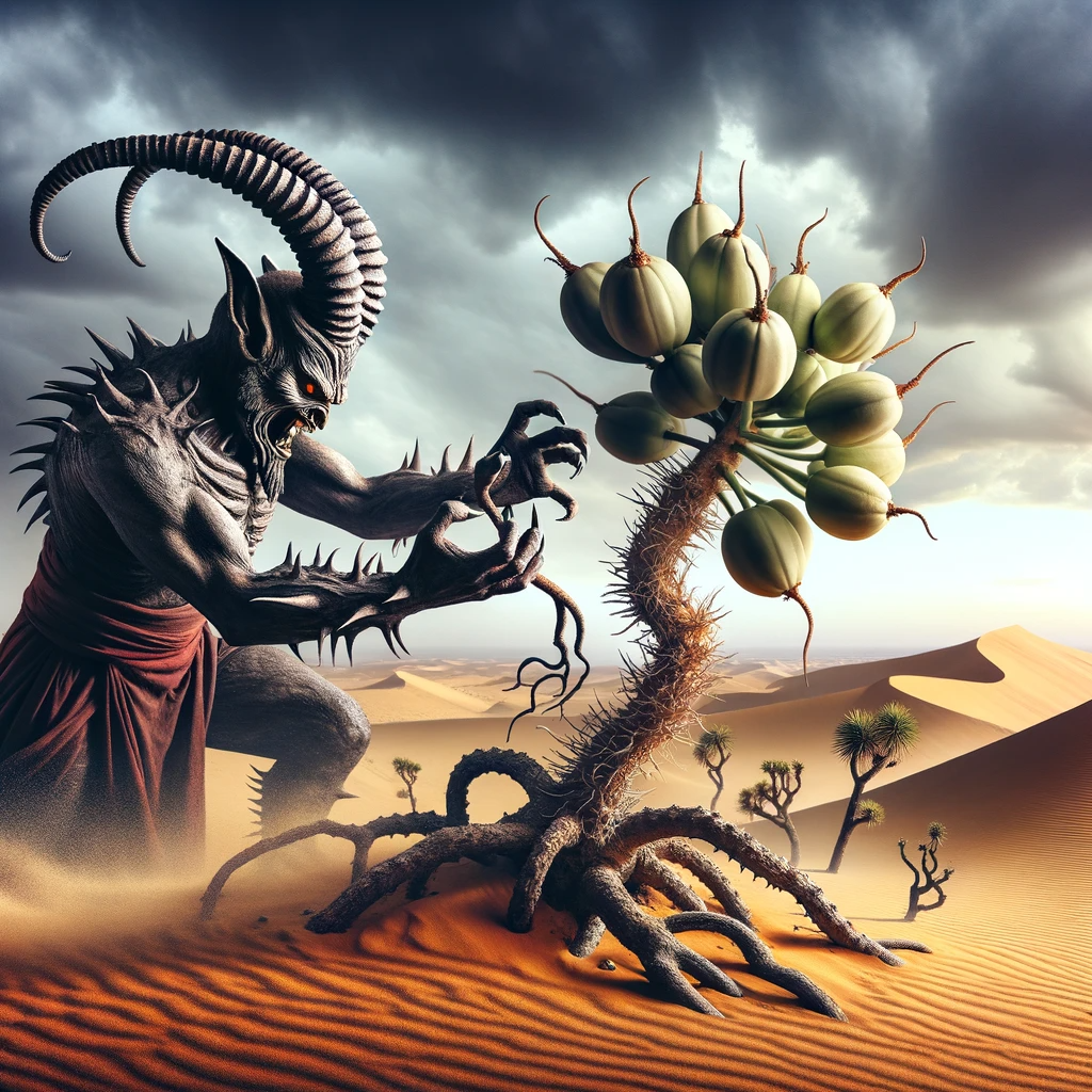 En essayant de se libérer, le diable marqua la plante de ces "griffes". Les locaux, impressionnés par cette plante capable de défier une telle entité, la nommèrent "griffe du diable". Ainsi, l'harpagophytum devint le symbole de la résistance face à l'adversité, célébré pour sa force indomptable.
