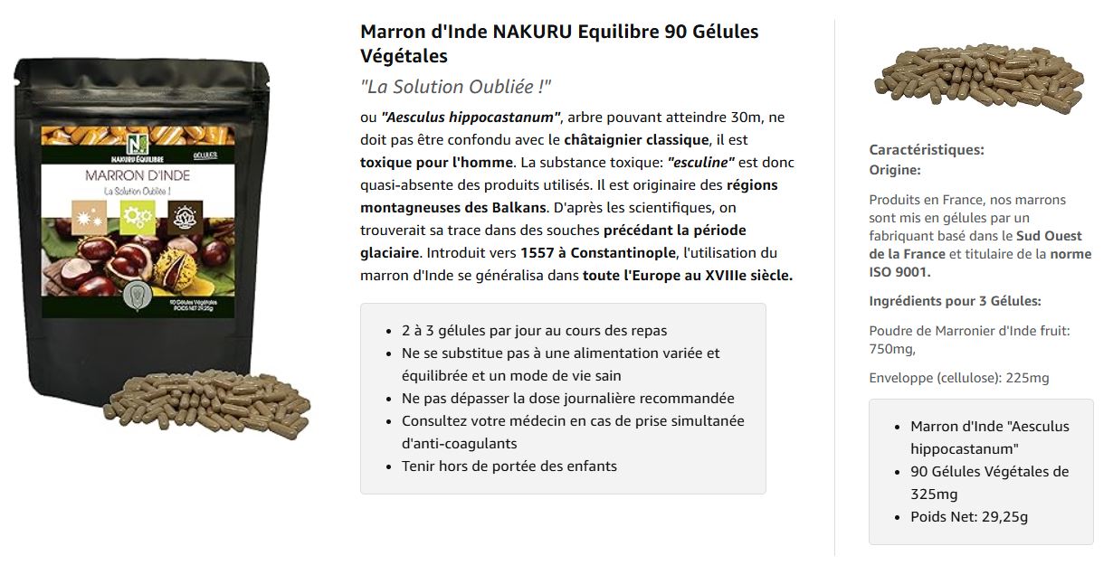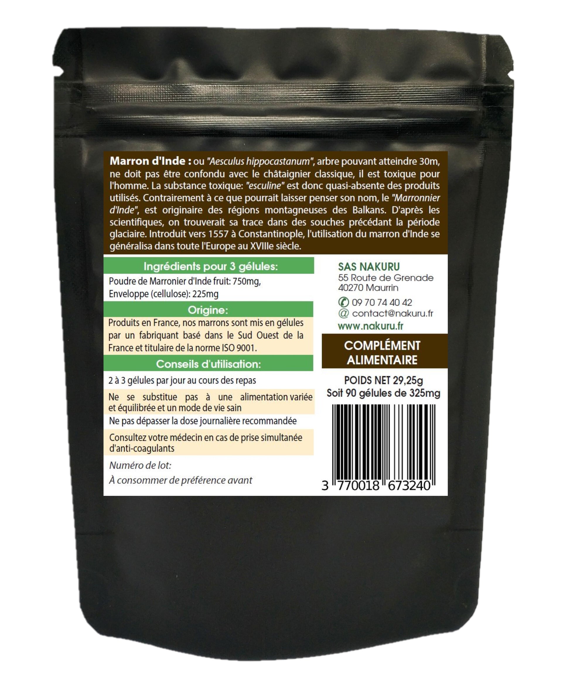 Oui. La poudre de Marron d’Inde sélectionnée par Nakuru est issue de fruits rigoureusement contrôlés et analysés. La substance naturellement toxique (l’esculine) est absente du produit fini.
