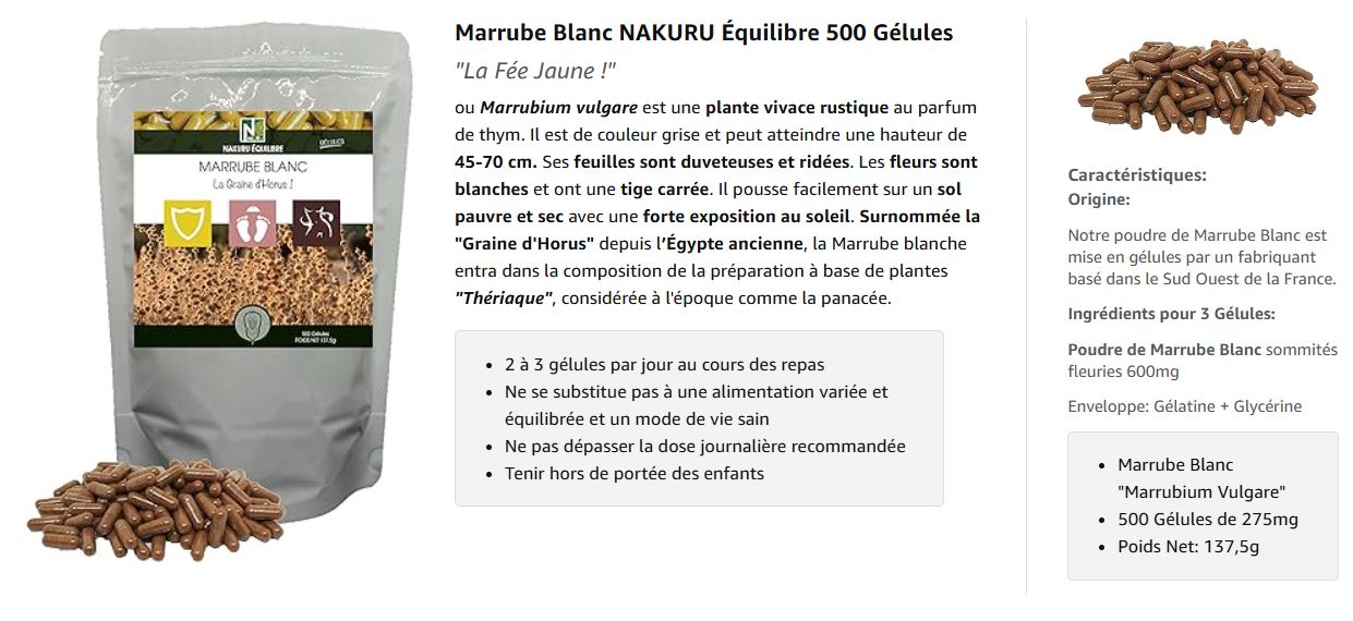 Le nom m’a intrigué, la plante m’a convaincu. On sent que c’est un produit de qualité. Le Marrube blanc mérite vraiment qu’on redécouvre ses vertus oubliées.