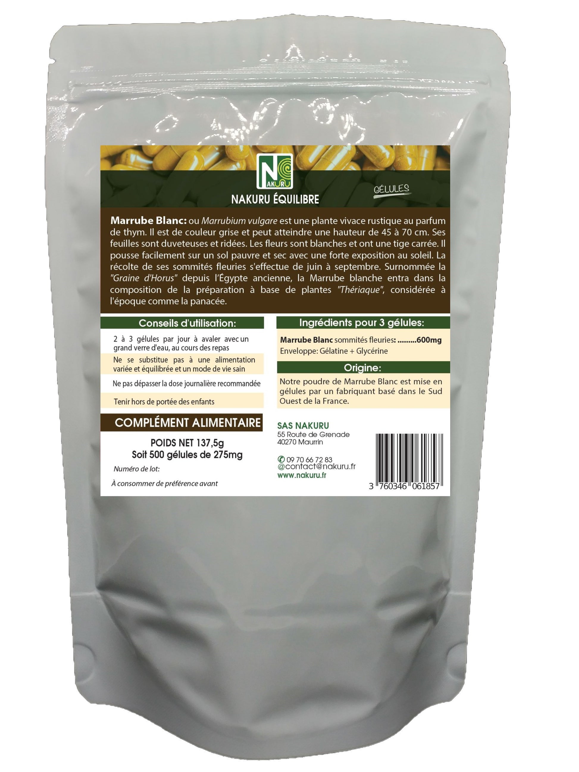 Marrube Blanc | 500 Gélules | Gamme Équilibre | Fabriqué en France | "La Graine d'Horus !"