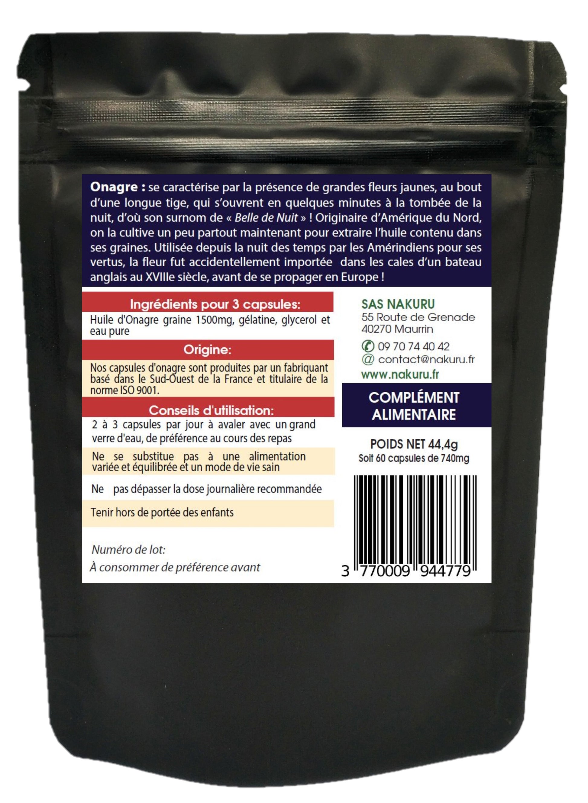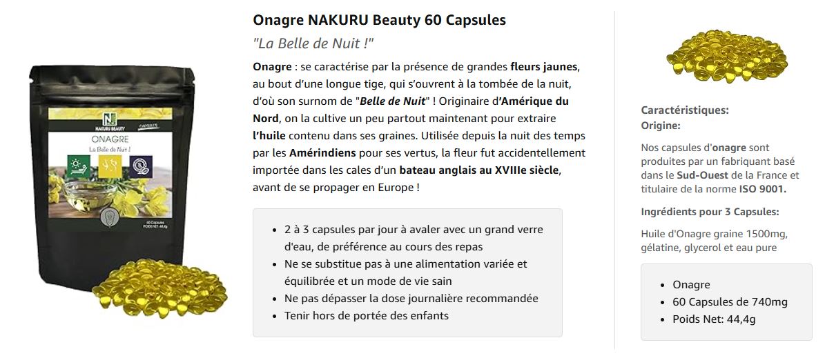 Onagre | 60 Capsules| Gamme Beauty | Fabriqué en France |"La Belle de Nuit!"