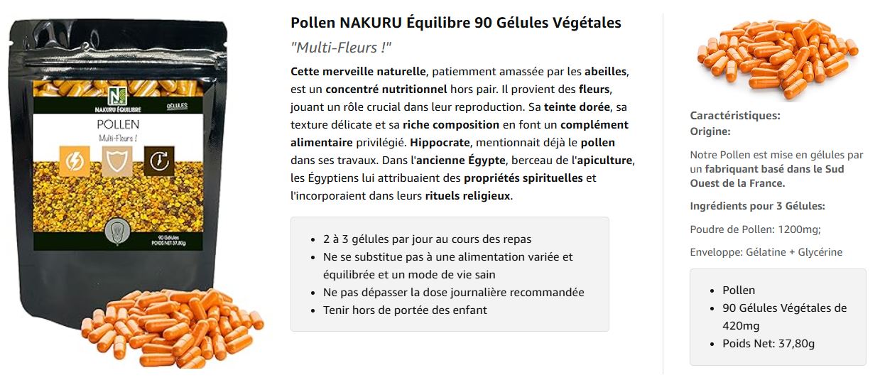 J’utilise les gélules de pollen en récupération : ça aide le corps à refaire le plein de nutriments après l’effort. En plus, c’est naturel, ça ne m’alourdit pas. Je recommande à mes clients !