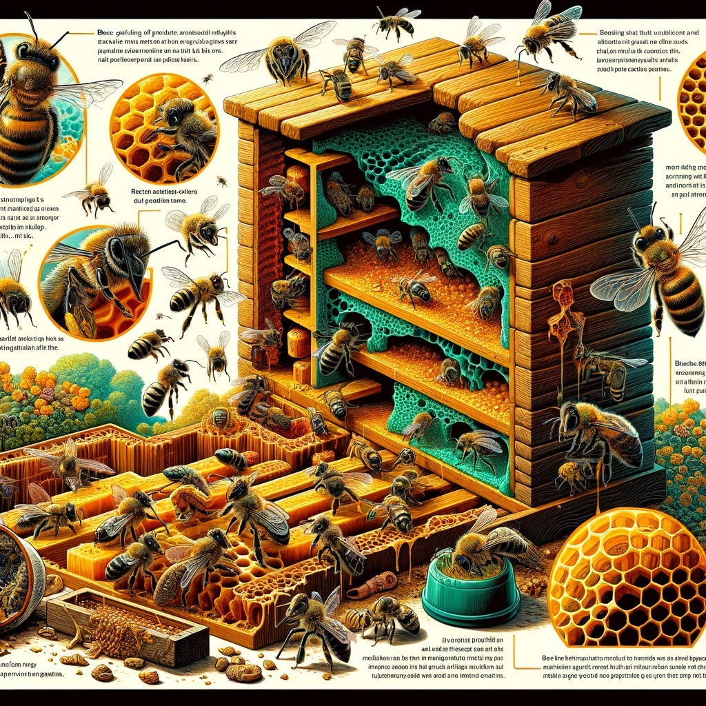 Dans la ruche, la propolis a de multiples usages. C’est un mortier qui sert au colmatage des fissures ou interstices, à l'étanchéité contre l'humidité et le développement des moisissures, au renforcement de rayons ou parties défectueuses de la ruche et à la protection de la colonie contre les intrusions externes par la réduction de la section de l'entrée de la ruche.